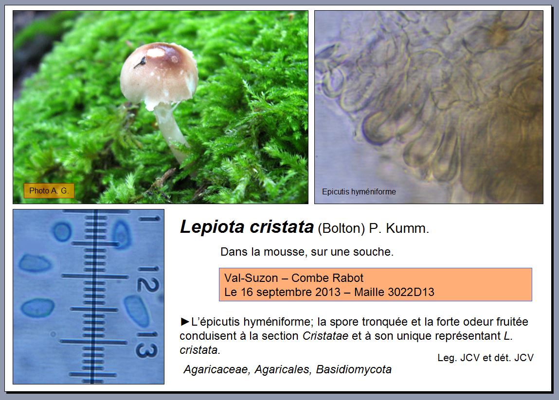 Lepiota cristata (Bolton) P. Kumm. (exemplaire atypique) - Fiche 1100